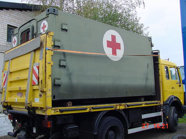 Durch die Abmessungen bedingt kann der Aufbau/Container mit Zurrketten und speziellen Halterungen (Sonderzubehör) auf LKW-Pritschen oder Eisenbahnwaggons befestigt und transportiert werden.